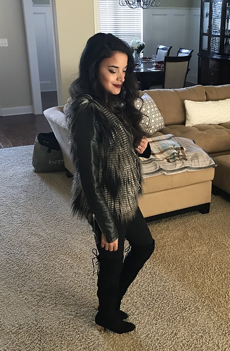 Looking back at my old posts, I was super skinny and I'm kinda glad i'm not that small anymore cuz my head looked gigantic lmao!! I was barely 100lbs in my first blog posts, now I'm 125lbs 😁 Anyway, so this outfit was Fall 2017..Around this time I wear alot of black and my favorite things to wear is my black leather jacket, faux fur, and knee high boots!! I especially love to wear a dark lip!!